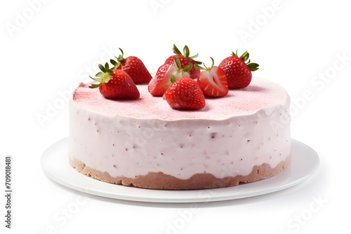 Strawberry cake isolated on white background, clipping path included.