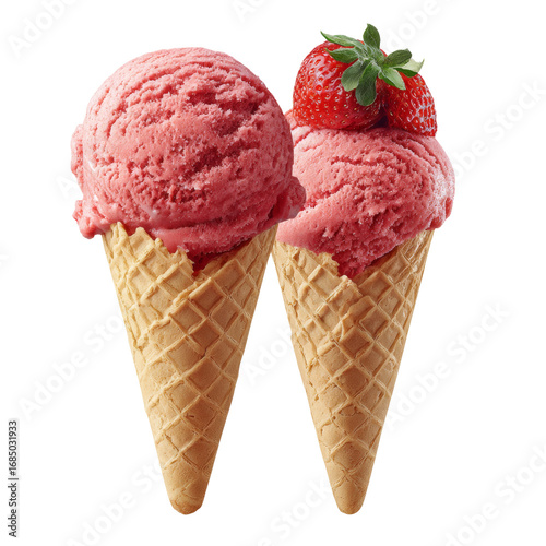 Strawberry ice cream dreams on a transparent canvas, a tantalizing frozen treat, a sweet summer