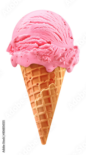 Strawberry Ice Cream on Waffle Cone Transparent Background