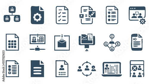 Streamlining Digital Operations A Collection of Essential Business and Management Icons Against a Clean Minimalist Dark