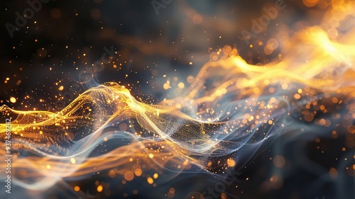 Streams of light creating abstract organic designs, lively and dynamic, 3D render