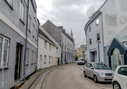 Street of the old Danish town of Aalborg, Denmark.