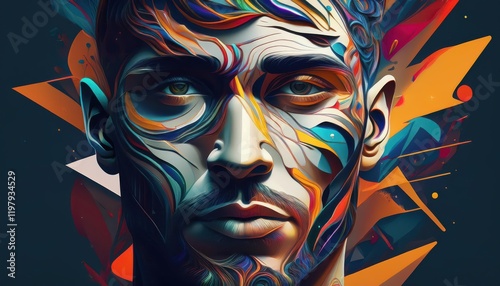 Striking Abstract Portraits of a Person Amidst an Explosion of Vibrant Colors and Geometric Shapes, Embracing the Ethereal Realm of Artistic Expression.