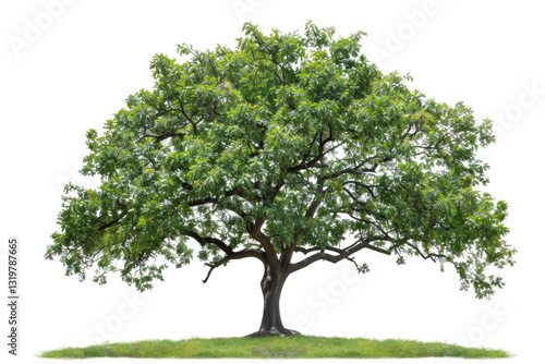 Striking black walnut tree with intricate bark patterns and large, healthy leaves isolated on transparent background