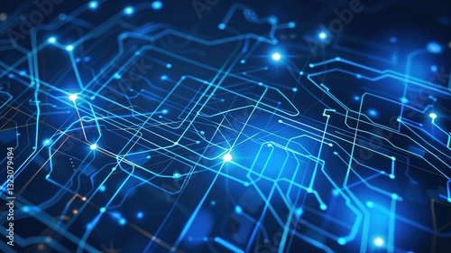 Striking blue technology-themed dynamic abstract lines form the main visual background design, creating an energetic and modern atmosphere. The fluid and vibrant lines give a sense of motion and innov