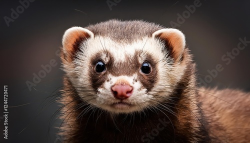 Striking CloseUp of a Mysterious Polecat, Showcasing Furs Rough Texture and Intense Brown Eyes in a Forest Setting, Conveying an Air of Wild Solitude.