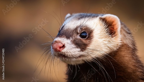 Striking CloseUp of a Polecats Intense Eyes, Set Against a Winter Forest Backdrop, Showcasing Fur Texture and Natural Beauty in High Definition.