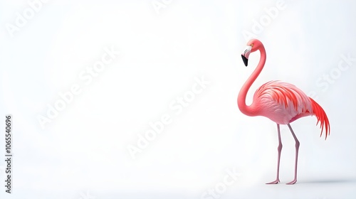 Striking flamingo stands gracefully at the edge of the frame and isolated in white background, wallpaper