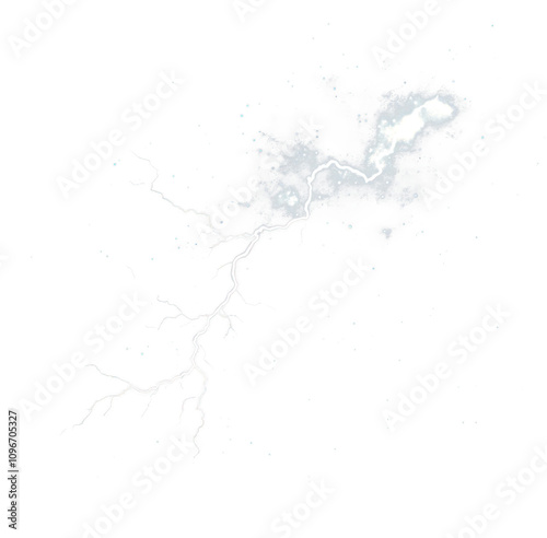 Striking lightning bolt illuminates isolate on transparent background, cutout, png