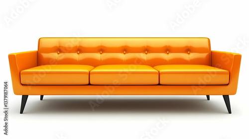 Striking Orange Sofa with Black Legs in a Minimalist Style Isolated on White Background with Smooth Lighting
