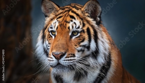 Striking Portrait of a Majestic Tiger amidst Dense Jungle Veil, Embracing the Moody Hues and Textures of Twilight in the Wild