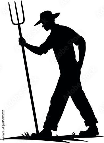 Striking Silhouette of a Determined Farmer Holding a Pitchfork – Iconic Rural Worker Vector Illustration for Agriculture, Farming, Countryside, and Heritage
