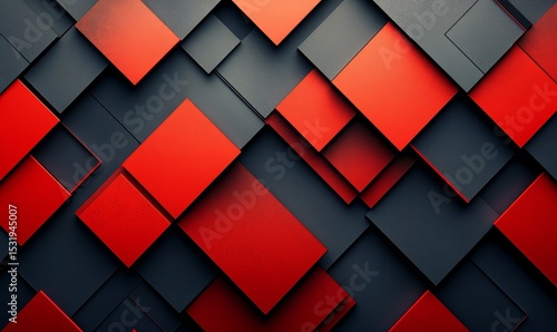 striking visual of sharp red geometric patterns layered over a dark gray gradient, creating depth, Generative AI