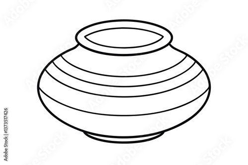 Striped Pottery Vessel Ancient Clay Jar, Water Container, Outline Drawing