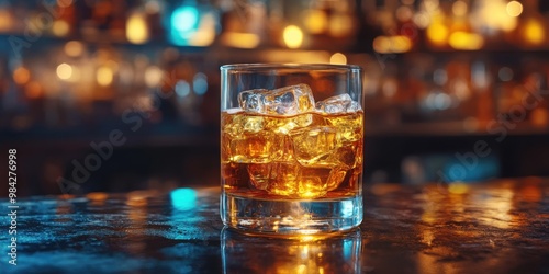 Strong alcohol drink. Whisky, rum, tequila, cognac at dark bar.