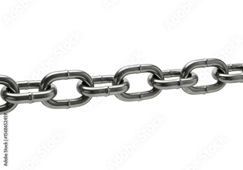 Strong Metal Chain Close-Up Durable Links, Industrial Design, Isolated on White Background.