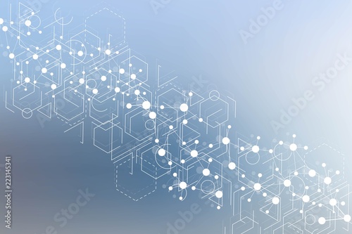 Structure molecule and communication. Dna, atom, neurons. Scientific concept for your design. Connected lines with dots. Medical, technology, chemistry, science background. Vector illustration.