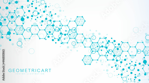Structure molecule and communication. Dna, atom, neurons. Scientific concept for your design. Connected lines with dots. Medical, technology, chemistry, science background. Vector illustration