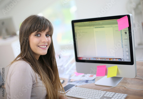 Student girl sitting in front of desktop computer