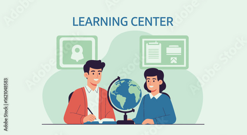 Students Exploring Geography At A Learning Center In A Classroom Illustration