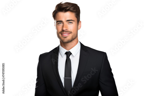 Studio portrait of handsome Caucasian Americana businessman wear formal suit and necktie with a beautiful smiling isolated on transparent png background, CEO manager with smart look.
