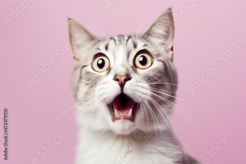 Studio portrait of shocked cat with surprised eyes, concept of Curious feline