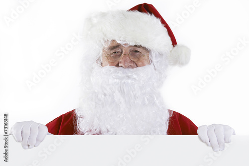Studio Shot Of Santa Holding Blank Piece Of White Card