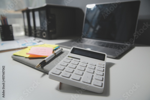 Studio workspace with laptop computer and office supplies. Work from home. With copy space