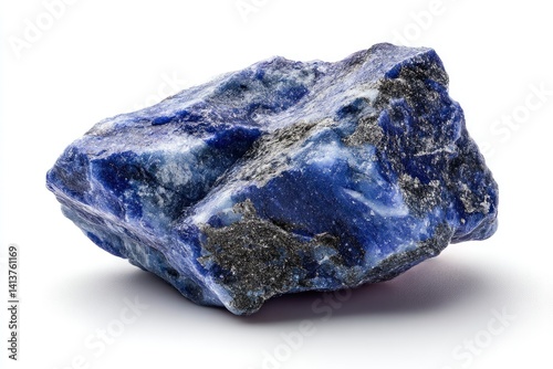 Studying Close Up of Lapis Lazuli Stone Rock on White Background