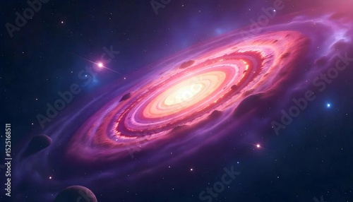 Stunning 3D render of a vibrant spiral galaxy with stars and planets, ideal for themes of space, cosmos, astronomy, and science fiction