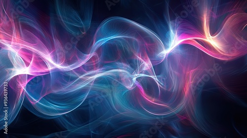 Stunning abstract light play with swirling, kaleidoscopic patterns of luminous energy interacting with delicate, iridescent textures