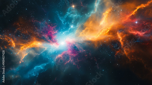 Stunning abstract space background illustration with bright stars, colorful nebulae, and cosmic dust.
