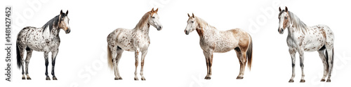 Stunning appaloosa horses showcasing a variety of unique coat patterns and colors, featuring distinctive spots, elegant postures, ideal for nature and animal enthusiasts' visual projects.