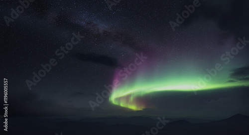 Stunning Aurora Borealis Display Over Mountain Range Under Starry Night Sky