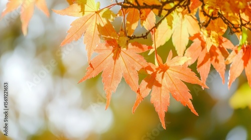 Stunning Autumn Leaves of Japanese Maple Tree Bathed in Warm Sunlight Against a Soft Background