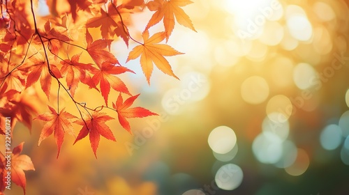 Stunning Autumn Red Maple Leaves Close-Up with Green Bokeh and Blurred Background, Reflecting Japanese Artistic Style in High Resolution and Vivid Natural Colors