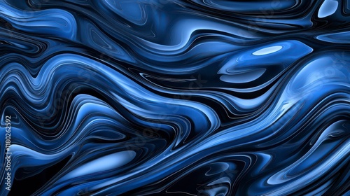 Stunning Blue and Black Abstract Liquid Art - A mesmerizing graphic design
