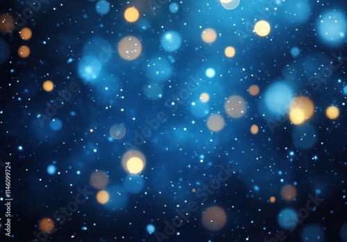 Stunning Blue and Gold Bokeh Background with Soft Light Flare, Ideal for Holiday Events, Celebrations, and Abstract Artistic Designs, Creating a Magical Atmosphere