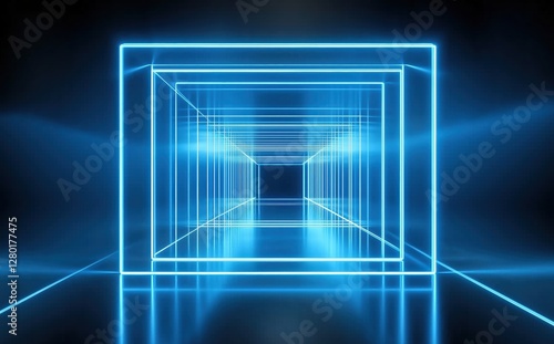 Stunning Blue Neon Rectangular Tunnel Creating a Futuristic Ambience with Depth and Perspective