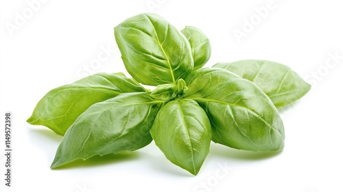 Stunning Close-Up of Fresh Basil Leaves Isolated on a White Background, Highlighting the Delicate Green Textures and Aroma of This Culinary Herb.