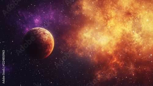Stunning Cosmic Landscape Featuring a Fiery Planet Against a Vibrant Nebula and Dazzling Star Field in Outer Space Capturing the Beauty of the Universe
