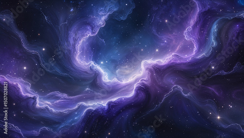 Stunning cosmic nebula swirling through deep space illuminated by scattered stellar light