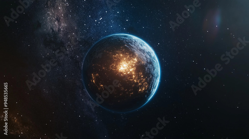 Stunning cosmic scene of Earth seen from space with glowing atmosphere and stars