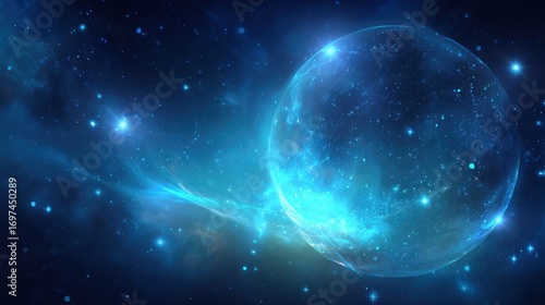 Stunning Cosmic Scene with Blue Hues and Bright Starry Background for Space and Universe Themes