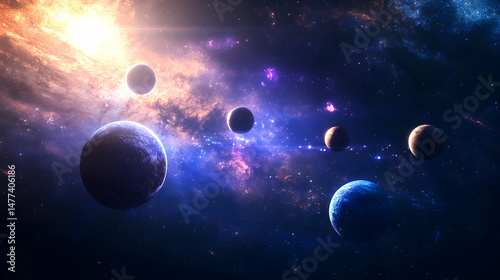 Stunning Cosmic Scene with Planets and Colorful Nebula Background
