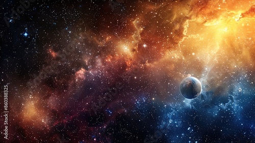 Stunning cosmic scene with stars, nebula, and planet in vast universe