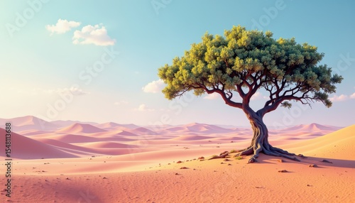 Stunning desert landscape with isolated tree arid region nature scene tranquil environment wide-angle view serenity