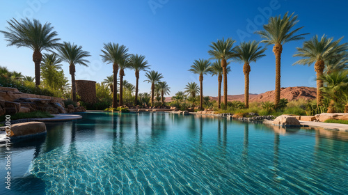 Stunning Desert Oases with Crystal-Clear Water and Towering Palm Trees