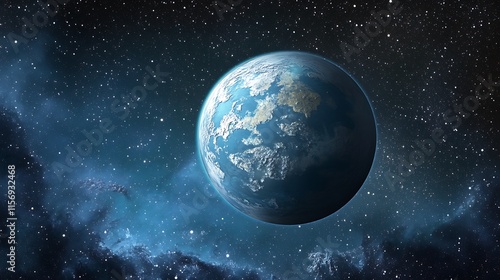 Stunning Digital Painting: A Serene Alien Planet Glimmering Mysteriously in Deep Space. AI Generated