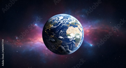 Stunning Earth View Surrounded by Cosmic Nebulae and Stars in an Astronomical Setting